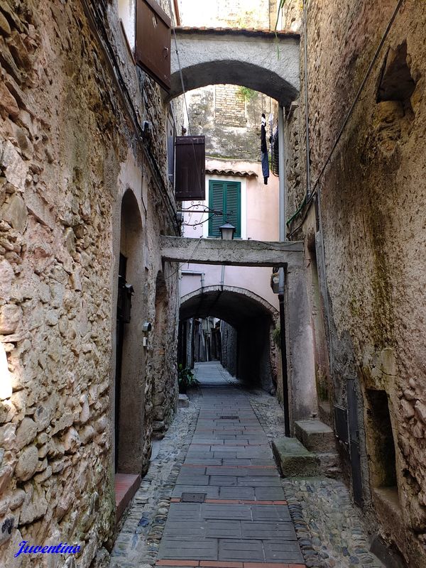 En route pour une visite du « centro storico » avec ses « carugi » (ruelles étroites) si pittoresques ! A noter les belles peintures d’Imelda Bassanello qui ornent de nombreuses portes.