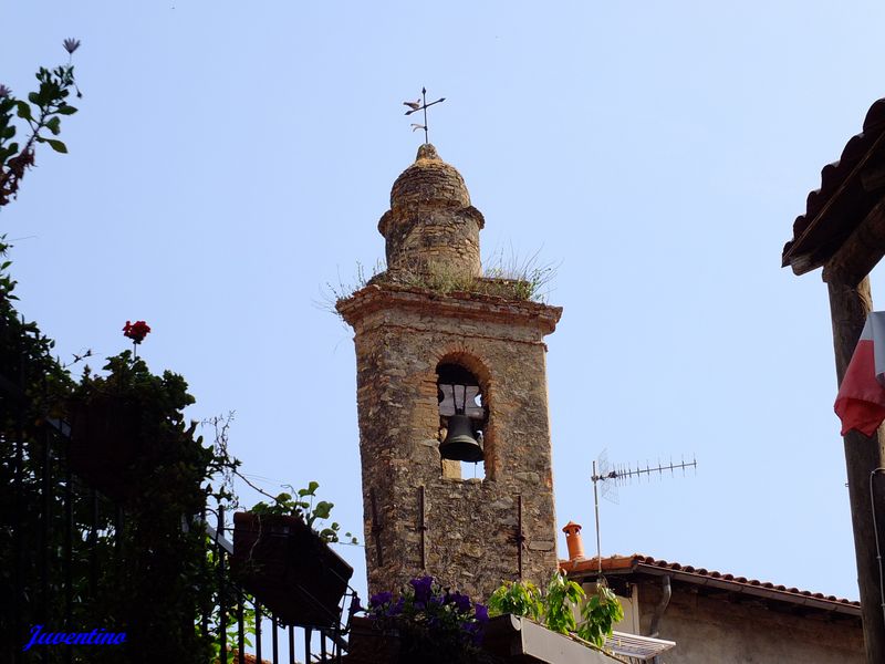 Nous arrivons devant une des vieilles églises de Vallecrosia Alta, la Chiesa dell’Assunta des 17/18èmes siècles. Pour en apprécier le campanile triangulaire, il faut prendre du recul !
